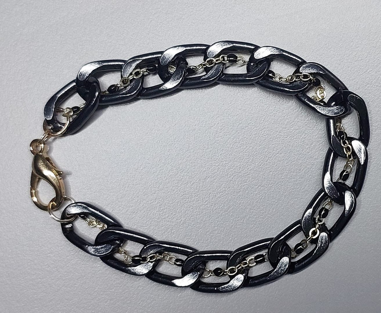 ❤️Siyah zincir ve içinde siyah boncukları olan sarı zincirle birlikte birleştirilmiştir.