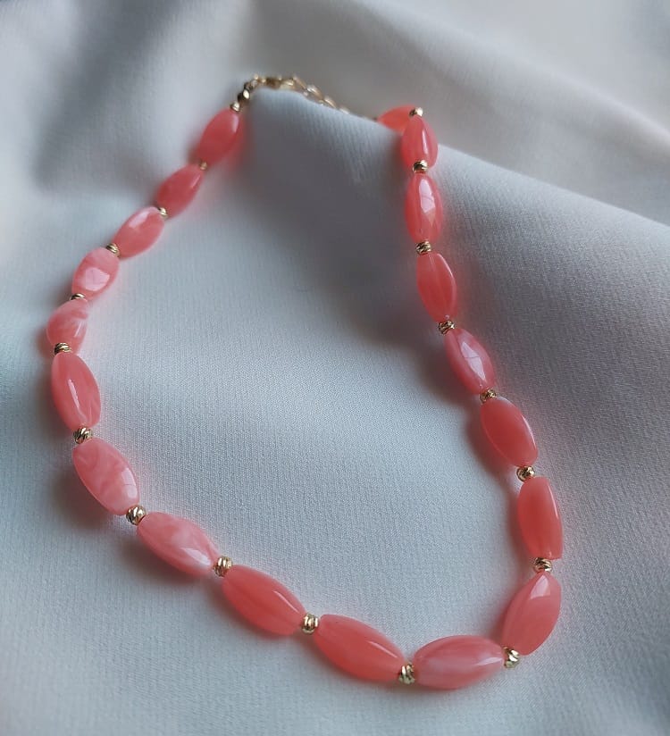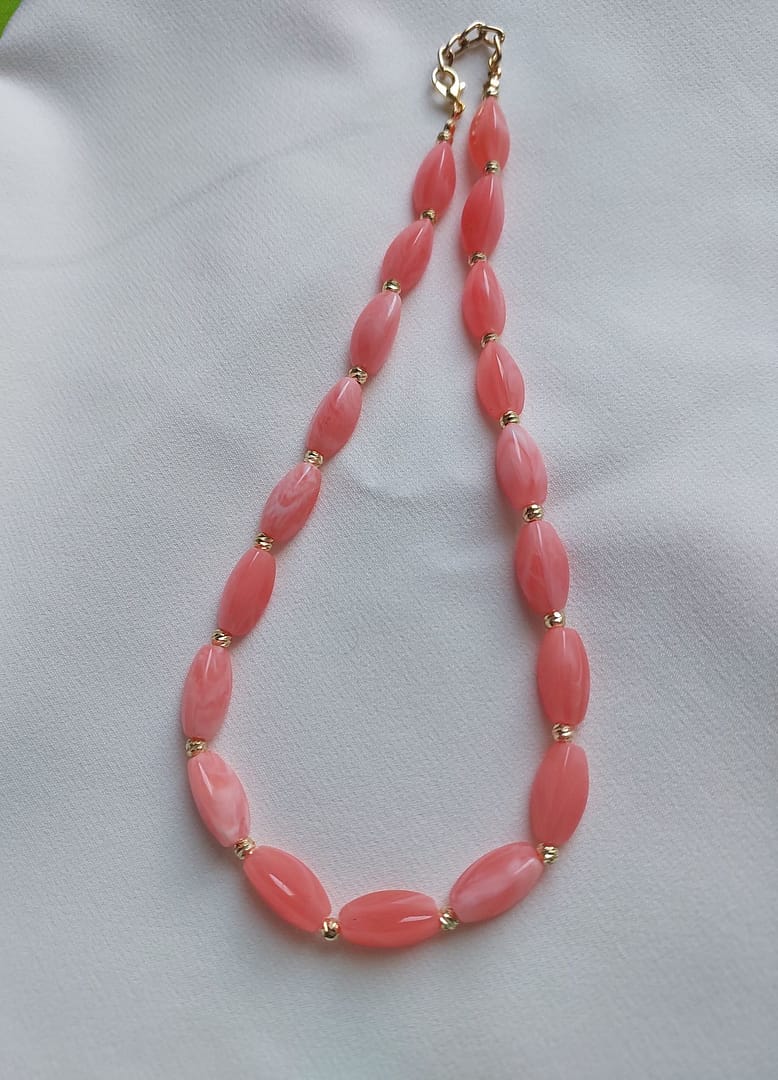 Ürün akrilik boncuklardan ve altın rengi metal dorika ara boncuklardan tasarlanmıştır. Rengi göründüğünden daha da güzeldir. Beyaz ve siyah renk elbiselerle  kombinlenebilir.