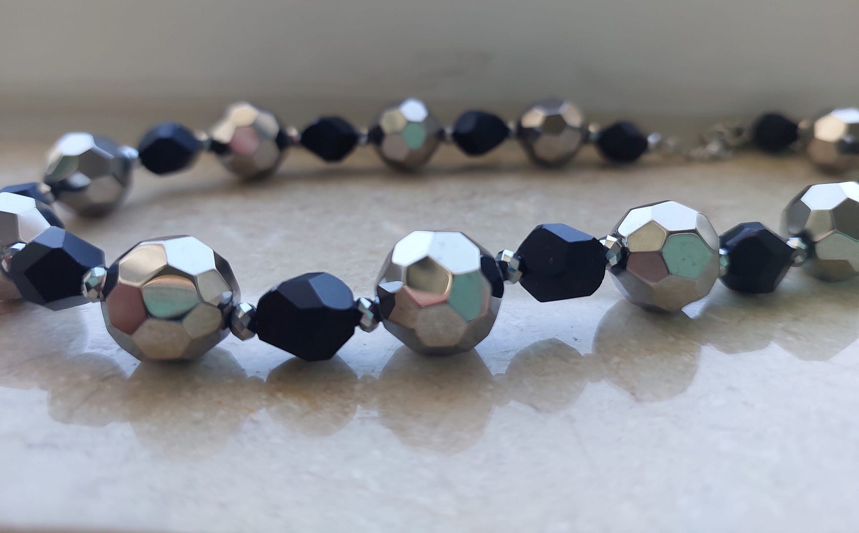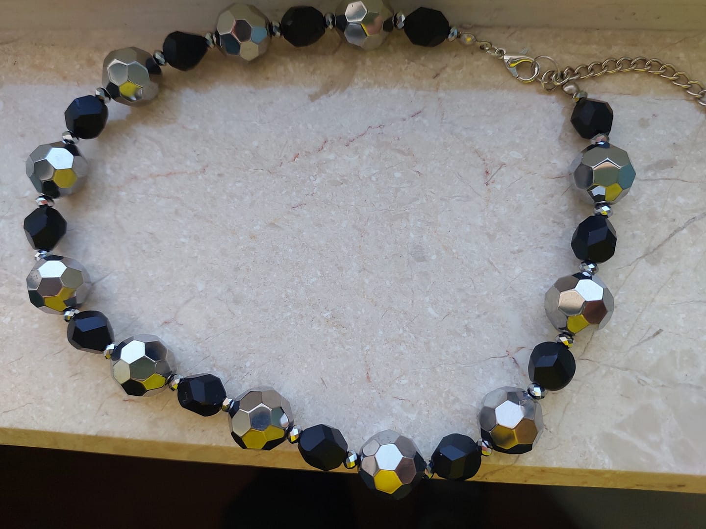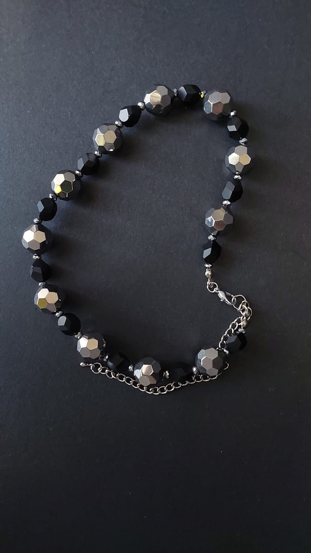 ❤️Köşeli mat ve parlak boncuklardan yapılmış olup ara aparat olarak gri kristal boncuklar kullanılmıştır.