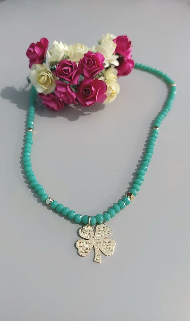 ❤️Kristal boncuklar ve sarı metal aparatlar kullanılarak yapılmıştır.